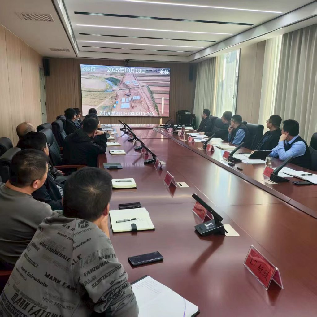 会议上,雄港公司总经理王辉率先传达 10 月 21 日上午省厅调度会议精神,要求全体参建人员将上级部署转化为实际行动;各标段负责人汇报现阶段问题、下一步计划及保障措施,提供一线施工参考;各分管副总围绕进度、质量、安全展开深度分析,明确改进方向。