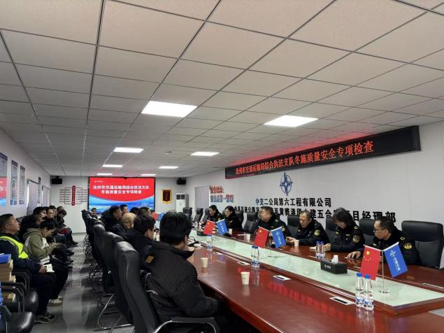 1月14日,沧州市交通运输局综合执法支队对曲港土建五标项目开展冬季施工质量安全专项检查,通过听取汇报、查阅资料、现场核查相结合的方式,对项目内业管理与外业实施情况进行全面排查和精准指导。