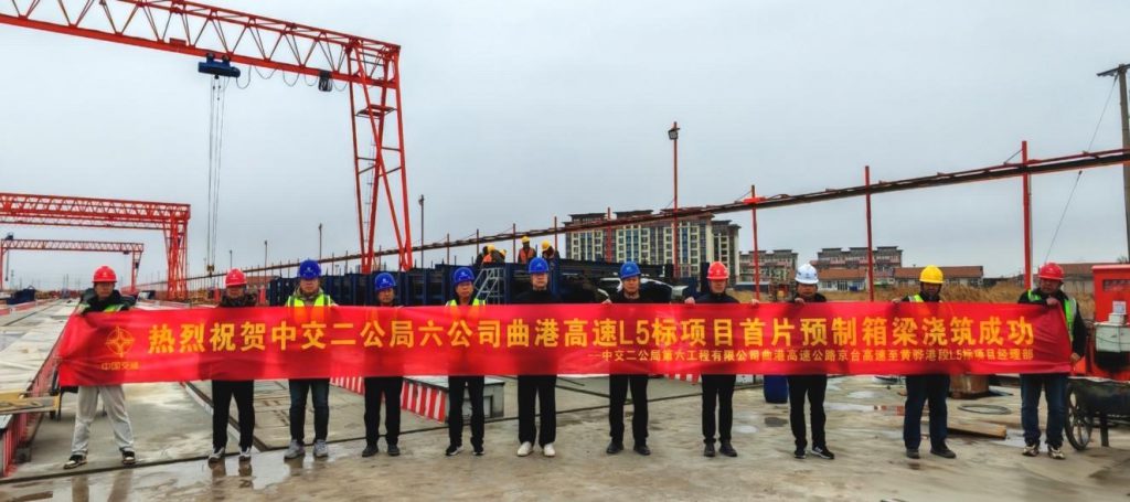 曲港高速二期土建五标项目首片预制箱梁成功浇筑
