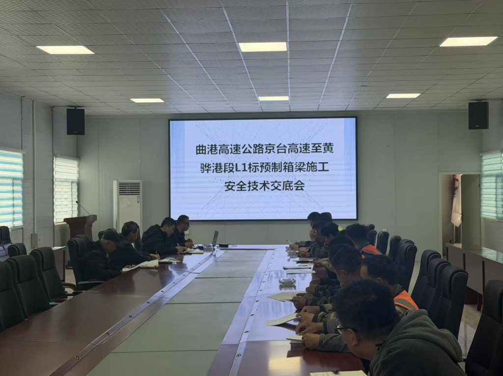 3 月 24 日,曲港高速京台高速至黄骅港段 L1 标预制箱梁施工安全技术交底会顺利召开。会议以技术交底明确标准、以安全筑牢防线,为项目后续施工高效推进奠定坚实基础。曲港高速二期L1标项目副经理路海涛出席会议,项目部相关技术负责人及各施工班组核心人员参会。