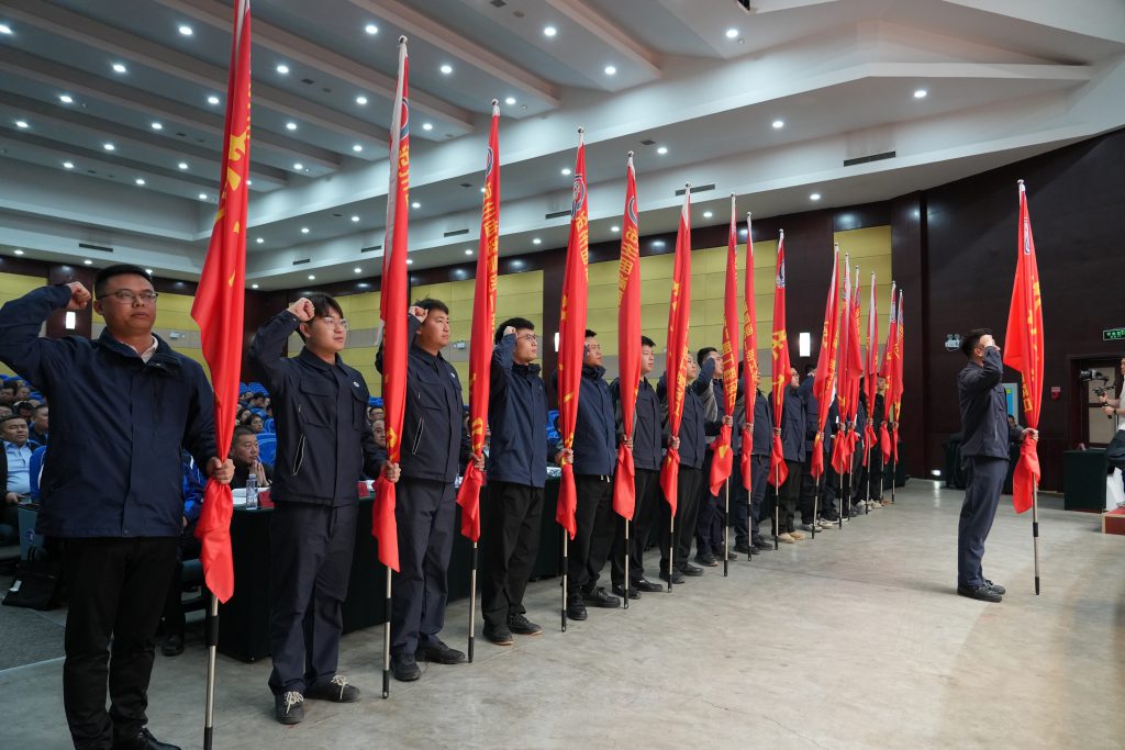 会上,雄港公司总经理王辉宣读了“大干90天”专项活动先进单位及个人表彰决定,与会领导为受表彰的先进监理、施工单位颁奖。随后,雄港公司董事长何征峰宣贯2026年度“攻坚全年 决胜目标”劳动竞赛方案,与各监理单位、施工单位现场签订劳动竞赛目标责任状。施工和监理单位代表就做好劳动竞赛活动作了表态发言。会议还举行了青年突击队授旗仪式,交发集团董事长刘俊德为青年突击队授旗。最后,刘俊德董事长作重要讲话,既肯定了项目建设首季取得的成绩,也指出了当前面临的问题和挑战,并对劳动竞赛开展及下一步工作提出明确要求。