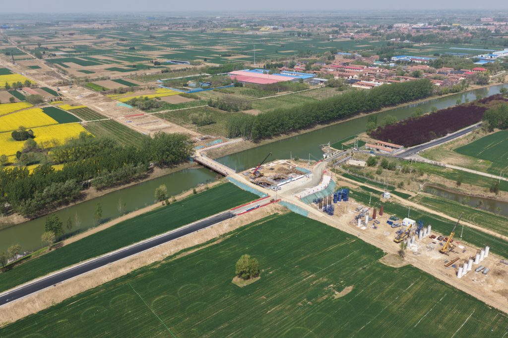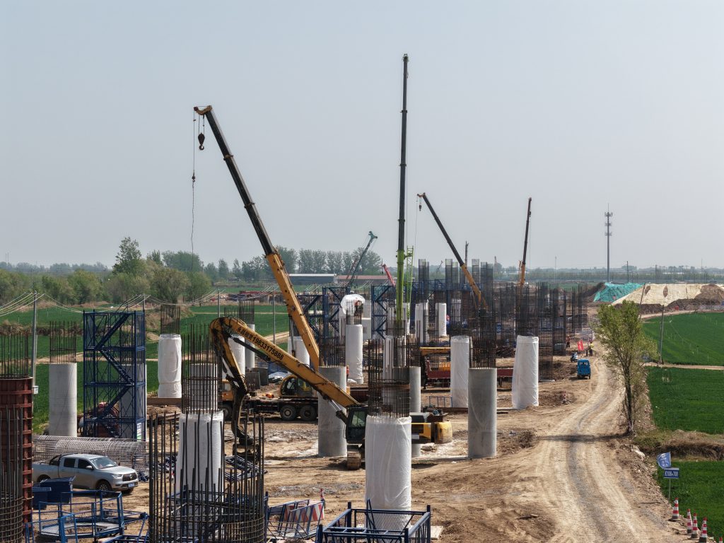 南运河大桥的墩柱一节节向上,