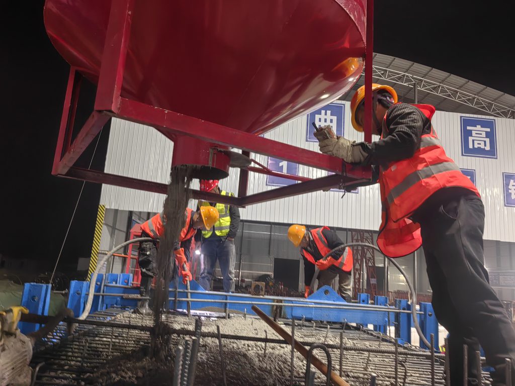 关模、扎筋、浇筑、振捣——大地在颤抖。