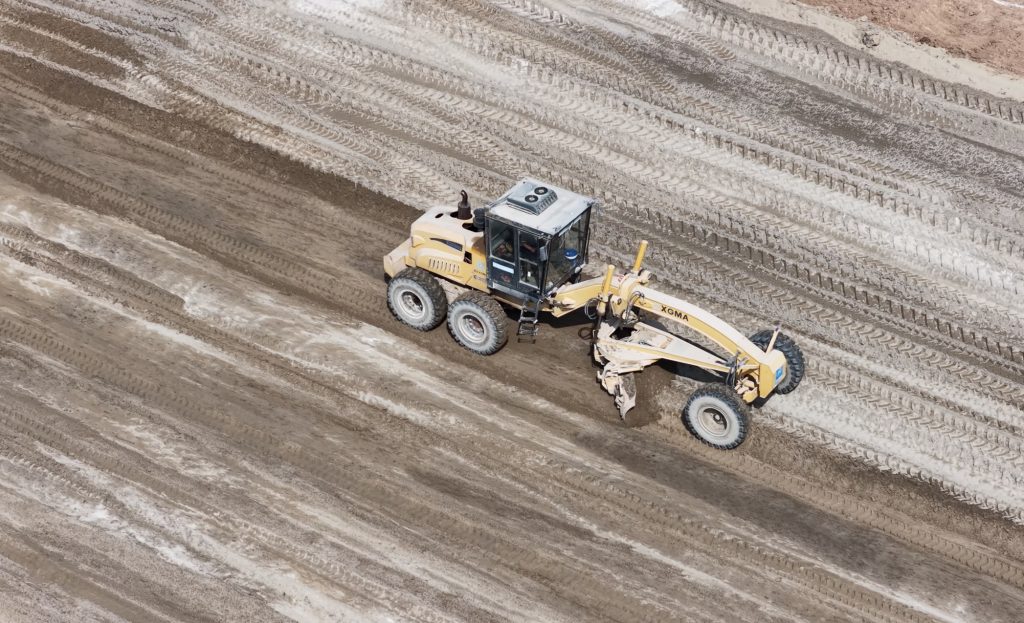 平地机推过,新剖面平坦如绸。
